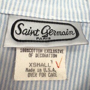 Saint Germain Paris Blue Striped Embroidered Cotton Jacket XSmall Made In USA