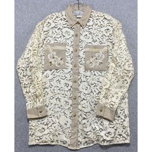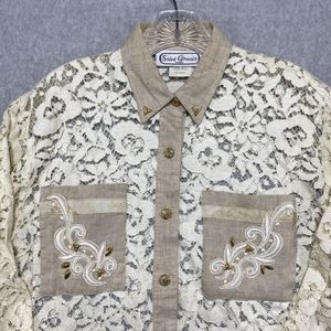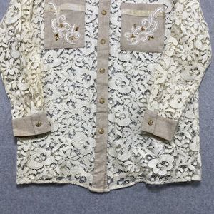 Saint Germain Paris Shirt Medium Paisley Lace Button up Pockets Long Sleeve