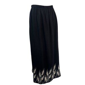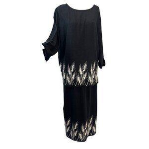 Saint Germain Paris Skirt and Blouse Set Ladies LARGE Embroidered Black Linen