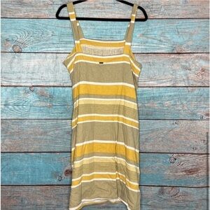 Saint Helena Poolside Dress L Yellow Striped Tank Mini Cover Up Button Beach