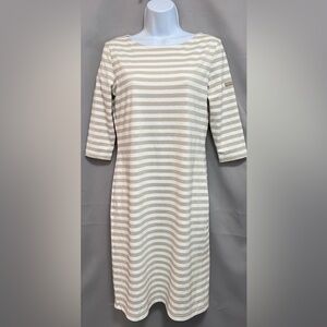Saint James Breton Striped Gold White Dress 3/4 Sleeve Women's Size 8 France