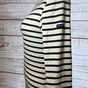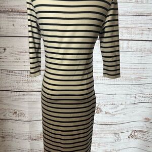 This black and white striped Saint James dress hugs in all the right places with a sleek fit and 3/4 sleeves. A modern twist on a classic look, perfect for city strolls, coffee dates, or even dressing up with a red lip…