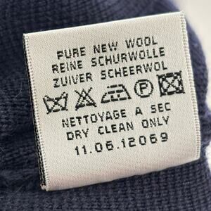 Saint James navy blue blazer jacket. One functional button at the front. Long sleeves. Collared. Brand patch at the hem. Pockets with stitched X details at the front. Stitched X details at the back sleeves with a vent as well. Looks great worn buttoned or left open. Pure new wool. Dry clean only. Made in France. In preowned condition.