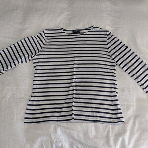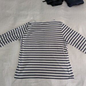 Saint James Navy and White Breton Striped Top, Size US 12, 3/4 sleeves