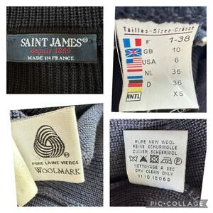 Saint James Pure Wool Knit Navy Cardigan Sweater Big Button Women’s US 6 UK 10