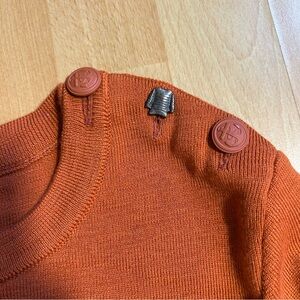 Saint James L’atelier terracotta burnt orange rust 100% new laine wool sweater with nautical shoulder buttons. Very nice quality soft wool. Made in France