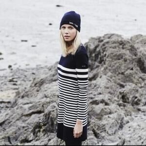 Saint James x Claudie Pierlot Sweater Dress Sz 2 Wool Long Sleeve Navy Ivory