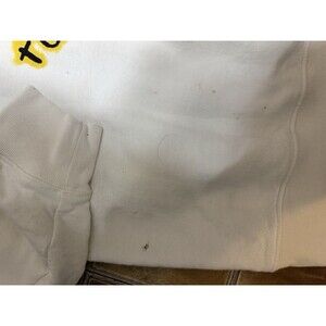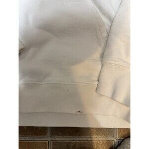 This hoodie shows noticeable wear including several dark stains on the front pouch, sleeves, and lower back area. Fabric has some discoloration from age/use. Please view all photos for accurate condition before purchase.