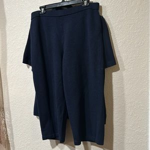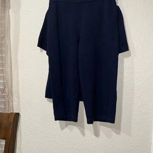 This Saint John Collection set in navy blue with pants capri length and matching Saint John top with zipper in front in great condition which is an asset to any wardrobe and can be dressed up or down.