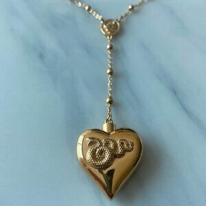 Features: This jewelry piece offers a classic rosary style chain with a sleek hollow heart pendant that's perfect for everyday wear. The pendant includes a discreet space inside, inspired by Lana del Rey's vintage vibe. Crafted with durable stainless steel and a thick 18kt gold plating, it’s rust- and tarnish-resistant, so it’ll stay beautiful over time. The lobster claw clasp makes it easy to put on and take off, while the stainless steel ensures long-lasting shine.