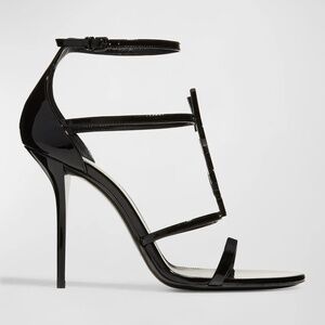 Saint Laurent 100mm Opyum YSL Patent Leather Sandals with Black Hardware 38