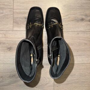 Brown circles on inner soles are heel grips added by previous owner. Preloved & sold as is.