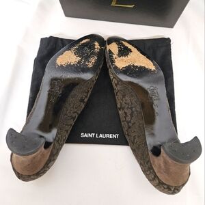 Saint Laurent Almond Toe Kitten Heels In Brown Suede And Velvet Mesh Size 9