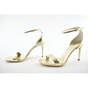 Saint Laurent Amber 85 Platino Gold Leather Ankle Strap Sandal Pump Heel 36.5