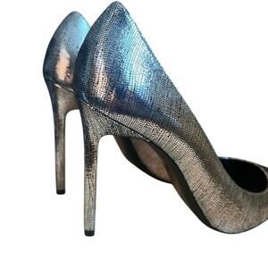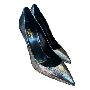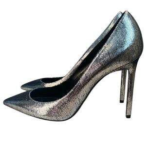 Saint Laurent Anja Silver Metallic Point Toe High Heels Size 39.5 EUC