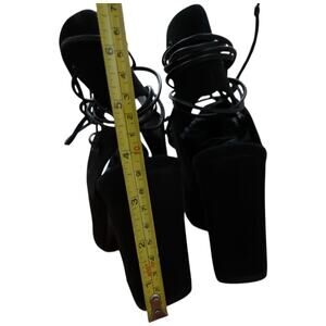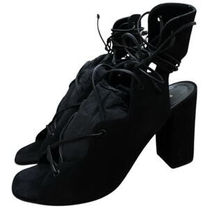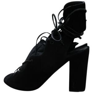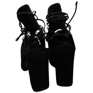 Saint Laurent Babies Black Suede Lace Up Block Heel Sandals Size 37