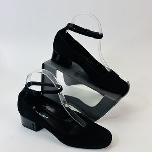 Saint Laurent Babies Block Heel Ankle Strap Pumps Black Suede Women’s Size 37