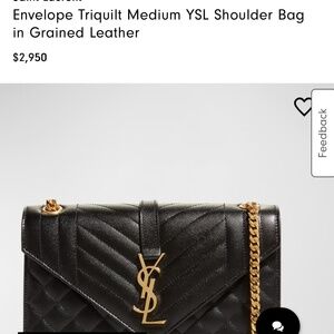 Envelope Triquilt Medium YSL Shoulder Bag in Grained Leather. Worn once. Still in cloth bag with authente