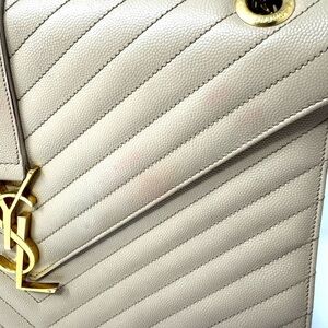 Saint Laurent Beige Large Grain de Poudre Chevron - Envelope Satchel YSL Bag