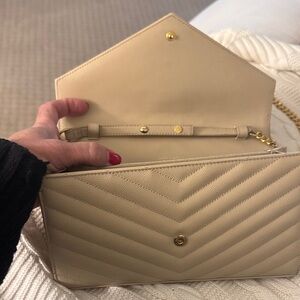 Saint Laurent Beige Quilted Leather Chain Wallet