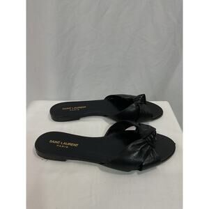 Saint Laurent 'Bianca' Black Leather Flat Sandals Size 10