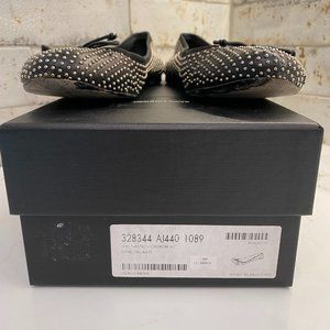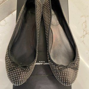 Saint Laurent Black Ballet Flats with Sliver Studs - Size 38 EU