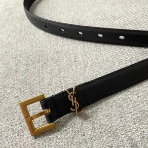 Saint Laurent Black Calfskin Belt · Gold Hardware · 90cm Length