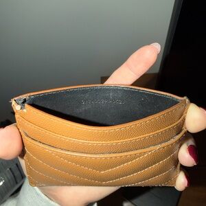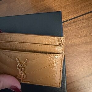 YSL Card holder purchased in Florence, Italy. Upper right corner has some wear where my puppy got to it. Seems like a simple fix!
