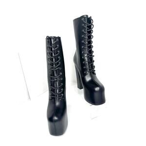 Saint Laurent Black Cherry Leather Platform Ankle Boots lace-up Designer EU 36.5