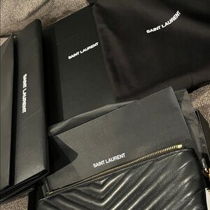 Saint Laurent Black Chevron Pouch with Gold YSL Emblem