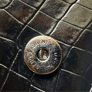 Elevate your style with this Yves Saint Laurent black croc-embossed leather bag. Perfect for any occasion, it combines luxury and functionality.