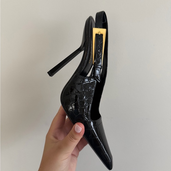 Saint Laurent Black Croc-Embossed Slingback Heels