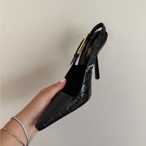 Saint Laurent Black Croc-Embossed Slingback Heels