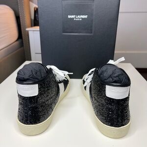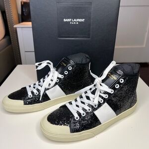 Saint Laurent Black Glittered SL/37 Court Classic Sneakers Size 8