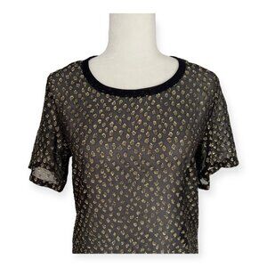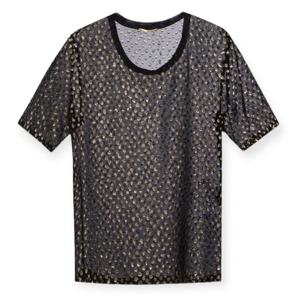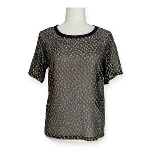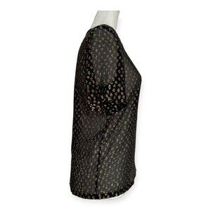 Saint Laurent Black Gold Metallic Polka Dot Sheer Tee