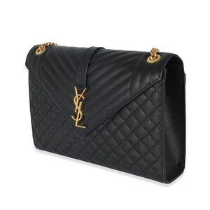 Saint Laurent Black Grain De Poudre Mix Matelassé Large Envelope Flap Bag