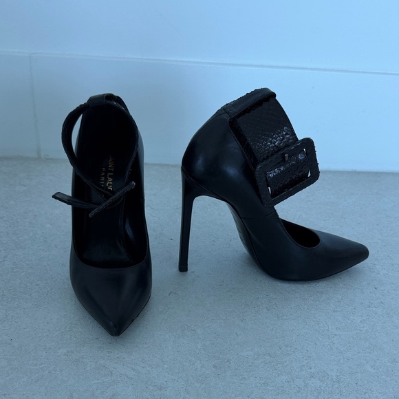 Saint Laurent Black Heels with Buckle Accent
