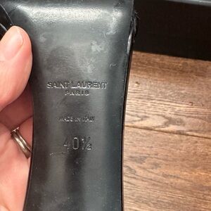 Chic Saint Laurent heels with a striking gold chain accent. Perfect for elevating any outfit.