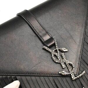 Saint Laurent Black Leather Fringe Chain Shoulder Bag FLY418336-0915 186222