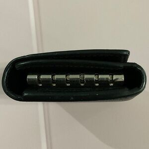 Elegant black leather key case by Saint Laurent with all key rings attached. Compact and stylish design.