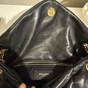 Saint Laurent Black Leather Shoulder Bag with Gold Details