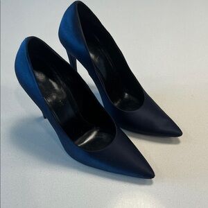 Saint Laurent Black Leather Strappy Platform Heels with Gold Logo