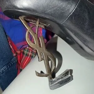 Elevate your style with the Saint Laurent Opyum leather heels. These elegant black shoes feature the iconic YSL logo heel, perfect for a sophisticated look. Size 38.5 . Very comfortable
