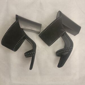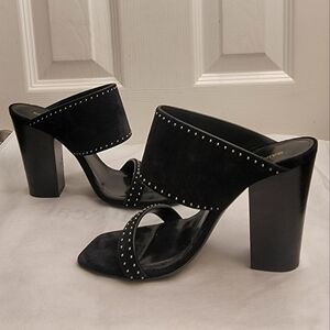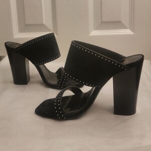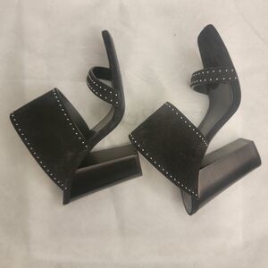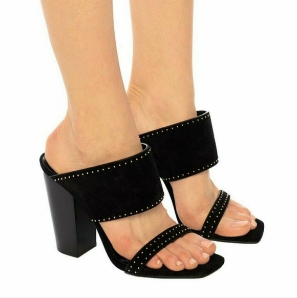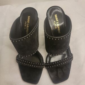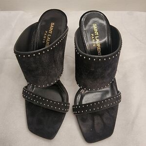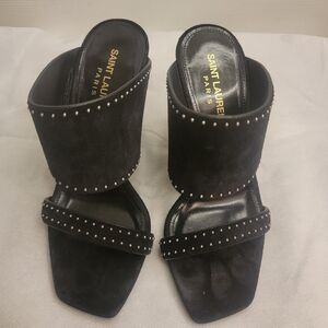 Saint Laurent Black Oak Slide Studded Sandals Sz 36