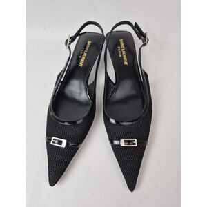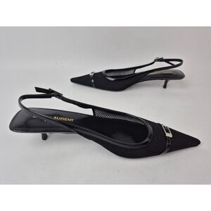 Saint Laurent Black Oxalis Quarida Slingback Mesh Buckle Kitten Heel Pump Size36