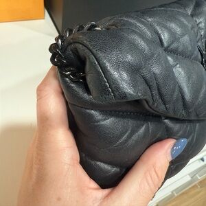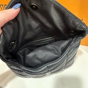 Elevate your style with this Yves Saint Laurent black quilted leather bag. Perfect for any occasion, it combines elegance and functionality. Includes dust bag. 2 slot credit card holder on interior as well as interior zip pocket. Black chain with black emblem/hardware. Quilted puffy style bag. Chain is removable and can be used as clutch! Some wear on corners and slight chain scratches as shown. Overall good used condition! Love this bag but it never gets used anymore so it’s time for a new home!