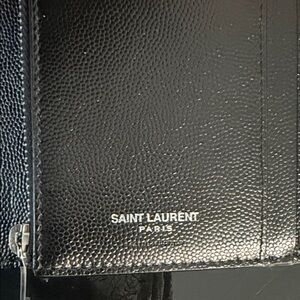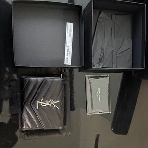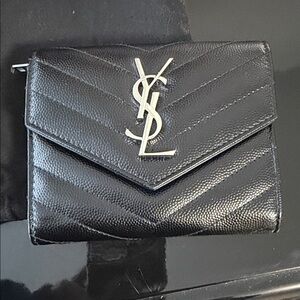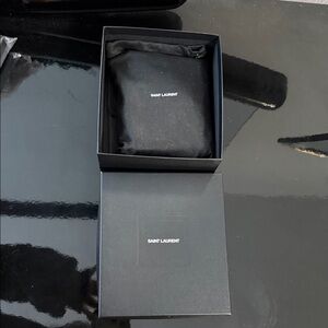 Chic black wallet with signature YSL emblem. Includes branded packaging.