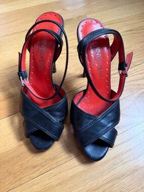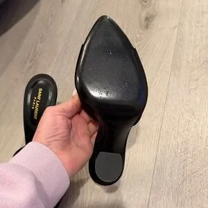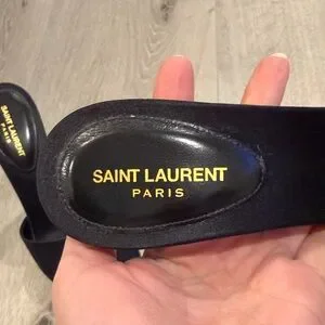 Saint Laurent Black Satin Pointed Open-Toe Mule Heels