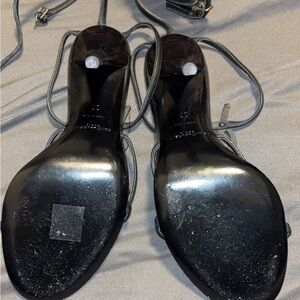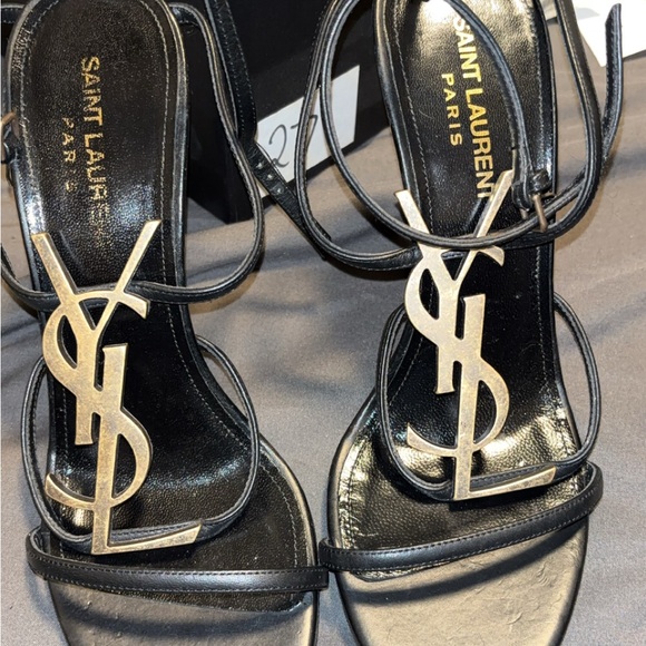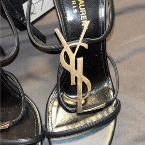 Saint Laurent Black Strappy Heels with Gold Accents