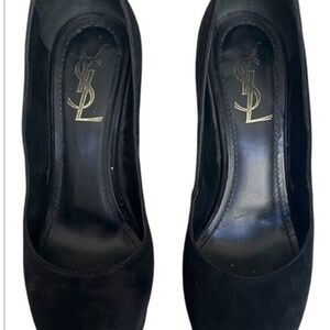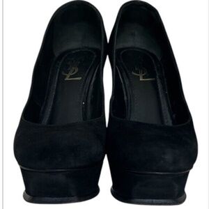 Saint Laurent Black Suede Platform Pumps Size 37 7 Round Toe YSL Designer Shoes